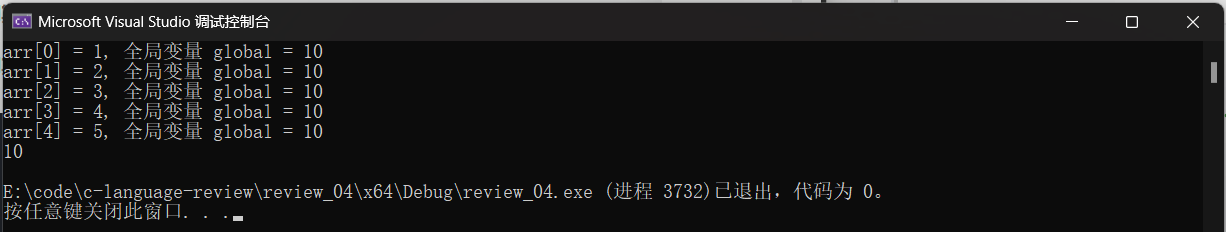 printf("arr[%d] = %d, 全局变量 global = %d\n", i, arr[i], global);