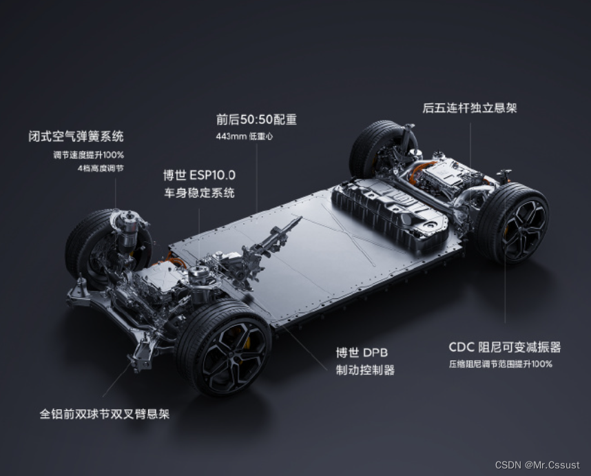 前双叉臂,后无五连杆,空悬,CDC阻尼可变减震,试驾过的网友大多反馈底盘操控偏舒适。