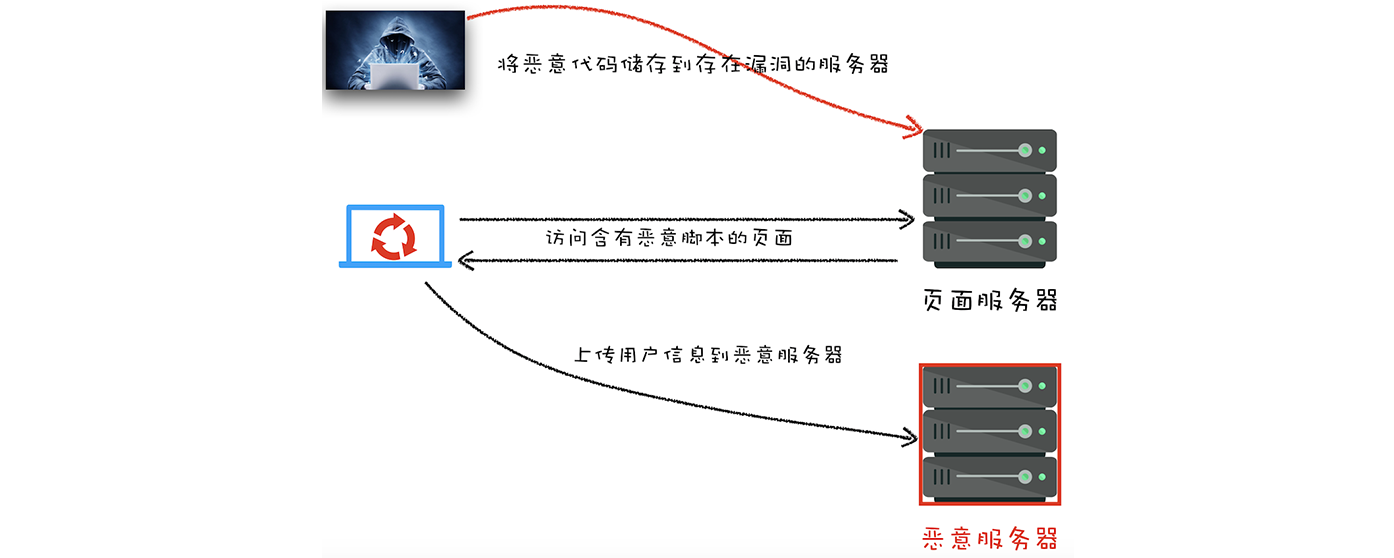 - 黑客利用站点漏洞将一段恶意 JavaScript 代码提交到网站数据库中