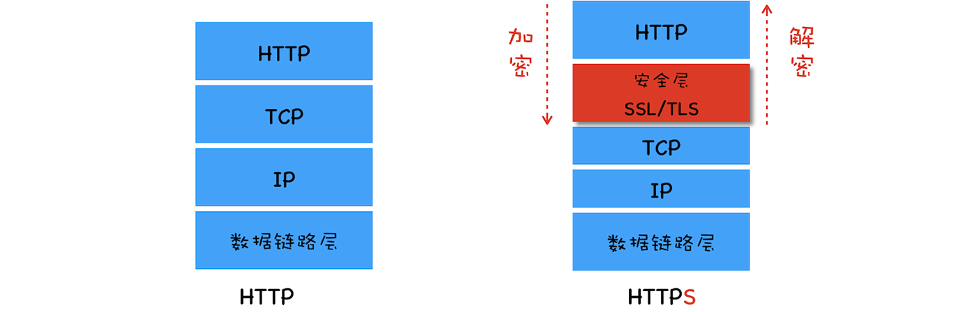 HTTPS 并非新协议,而是在 HTTP 协议栈的 TCP 和 HTTP 层之间插入一个 安全层 负责数据加密解密操作。