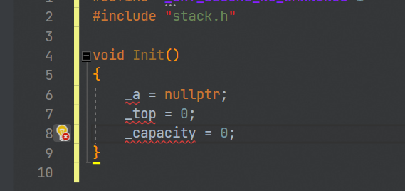 我们写一个栈,试图把一些方法的实现写到类外面,会发现: