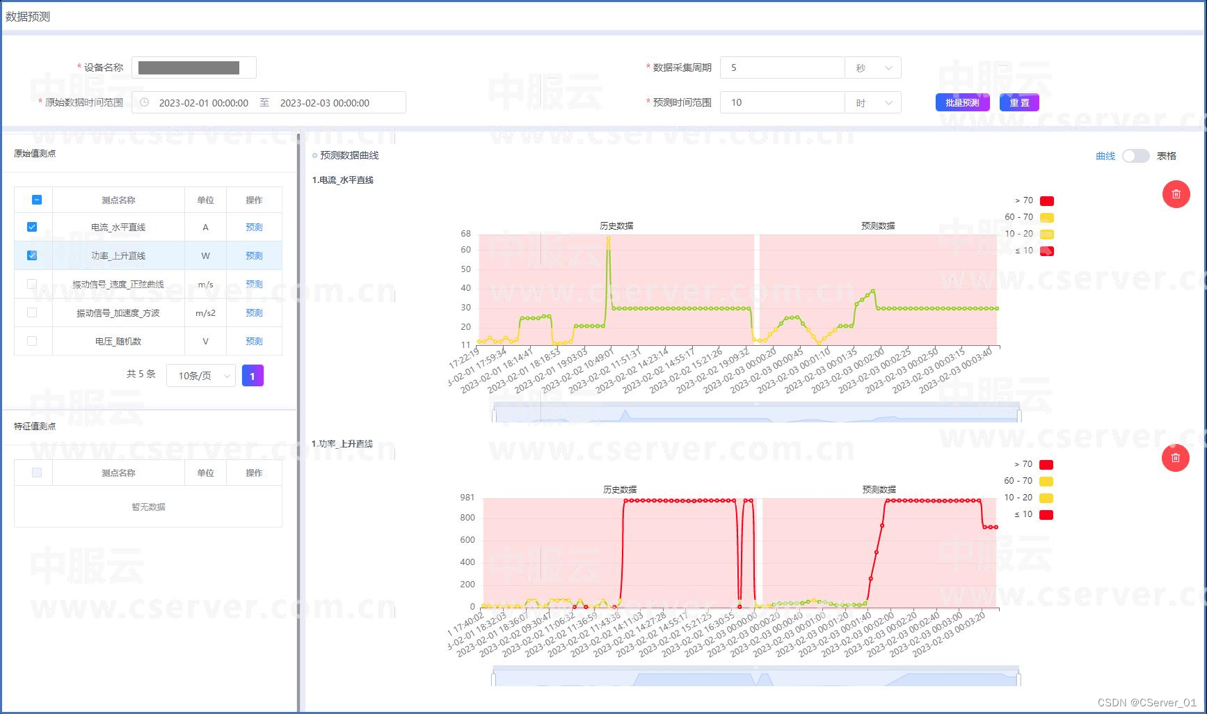根据某个测点过去一段时间的历史数据,预测未来一段时间的数据趋势,如果有问题,就发出报警提醒。