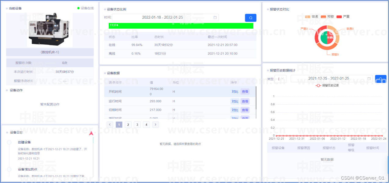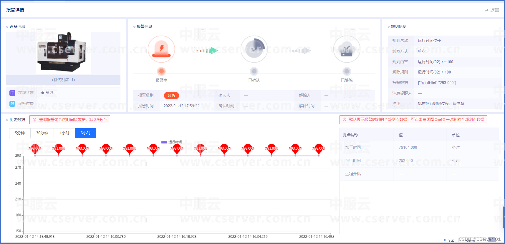 【2】设备连接状态:用图标的方式显示每台设备的在线连接状态,可详细查看每台设备的历史连接状态、历史报警、时序数据