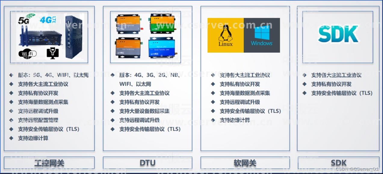 支持和自有多种型号的网关:NB、2G、4G、5G、wifi、有线;提供windows、linux网关、linux国产化网关、DTU、RTU。支持网关和中服云云端互联互通。