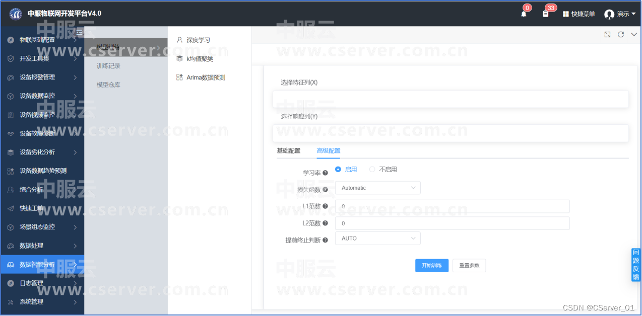 算法管理:V4.0版本现在包括:深度学习、k-means。