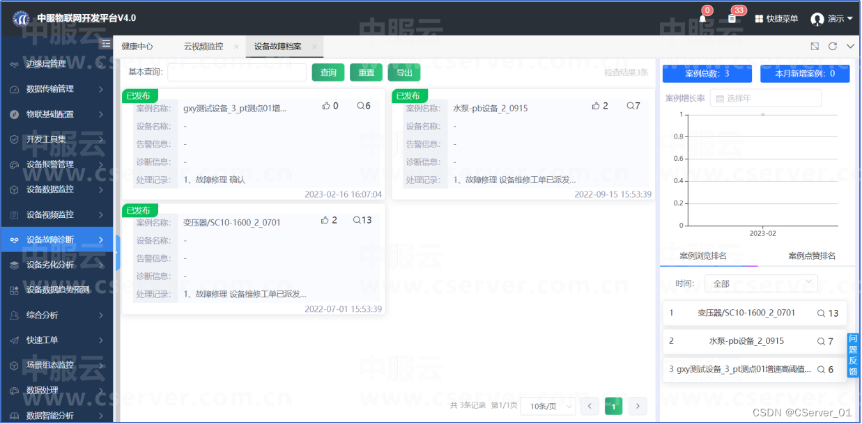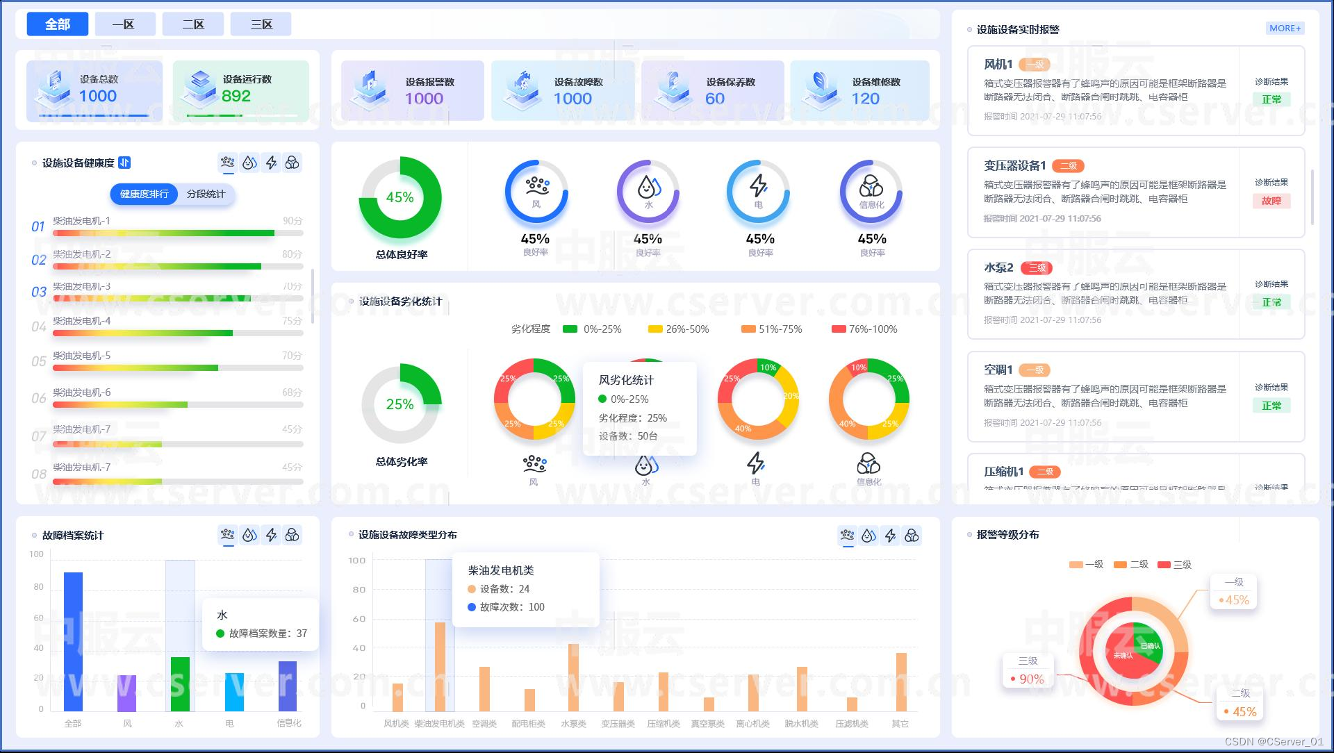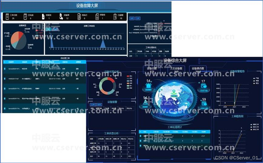 使用数据的方式,用不同的组件以不同的方式和视角展示设备状态、运行情况、性能、位置、故障、上线等。