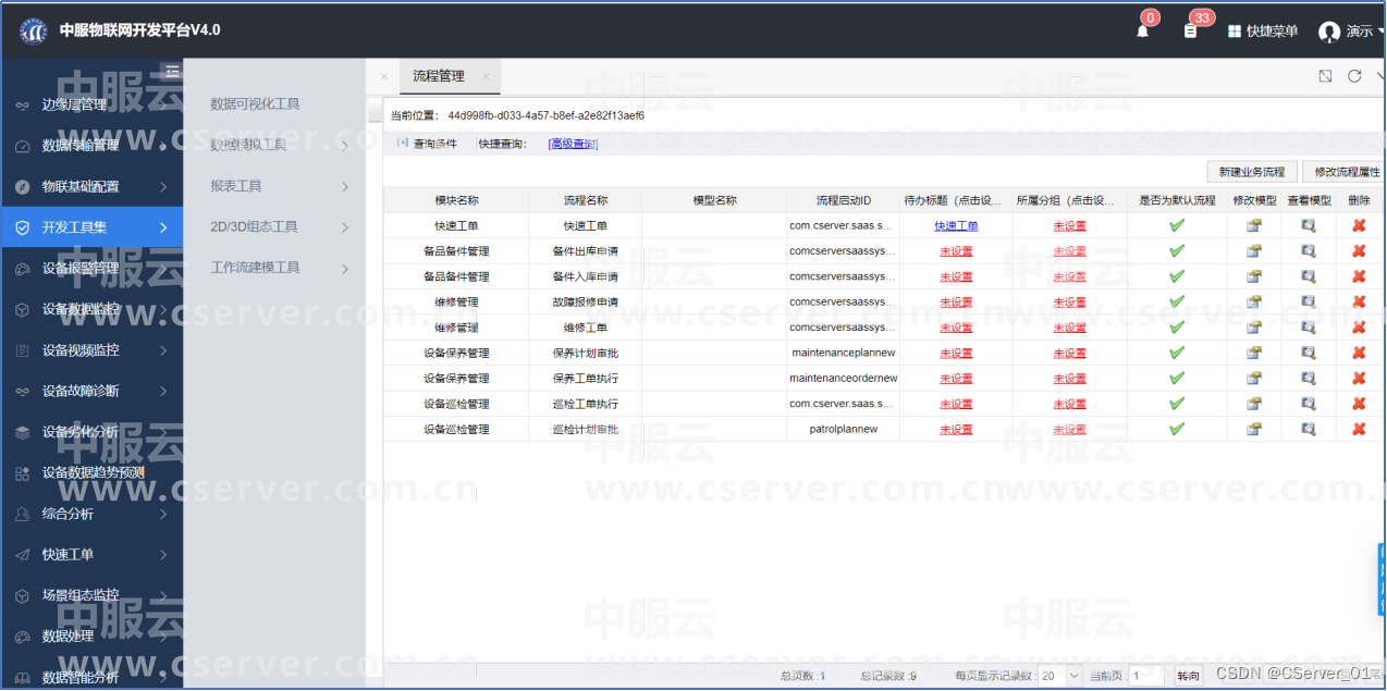 中服云物联网开发平台4.0版本包括六大快速开发工具,具体如下: