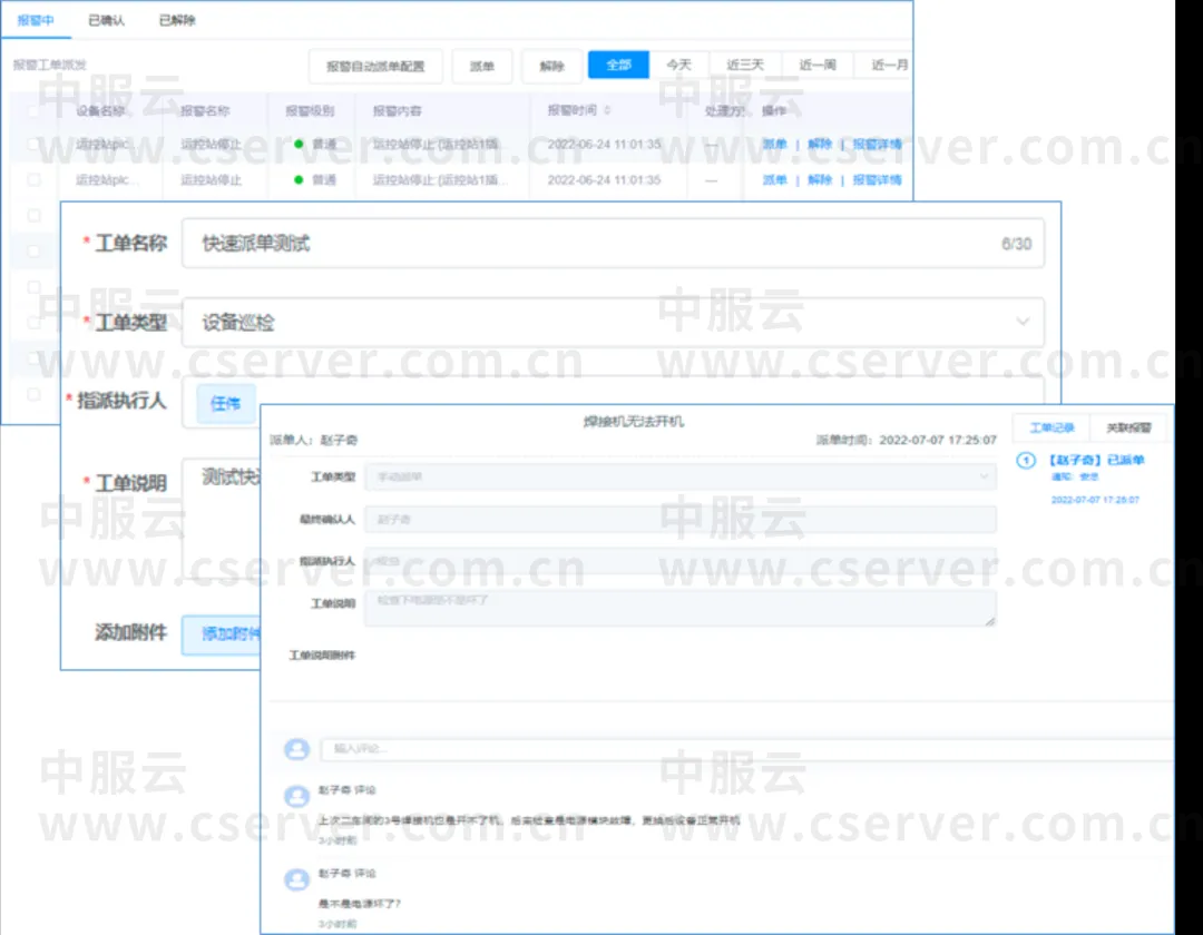 (3)工单:可从事件 / 报警自动派单,同时支持手动人工派单、派单中可多人协调交流,是轻量灵活的工单流转交流工具。