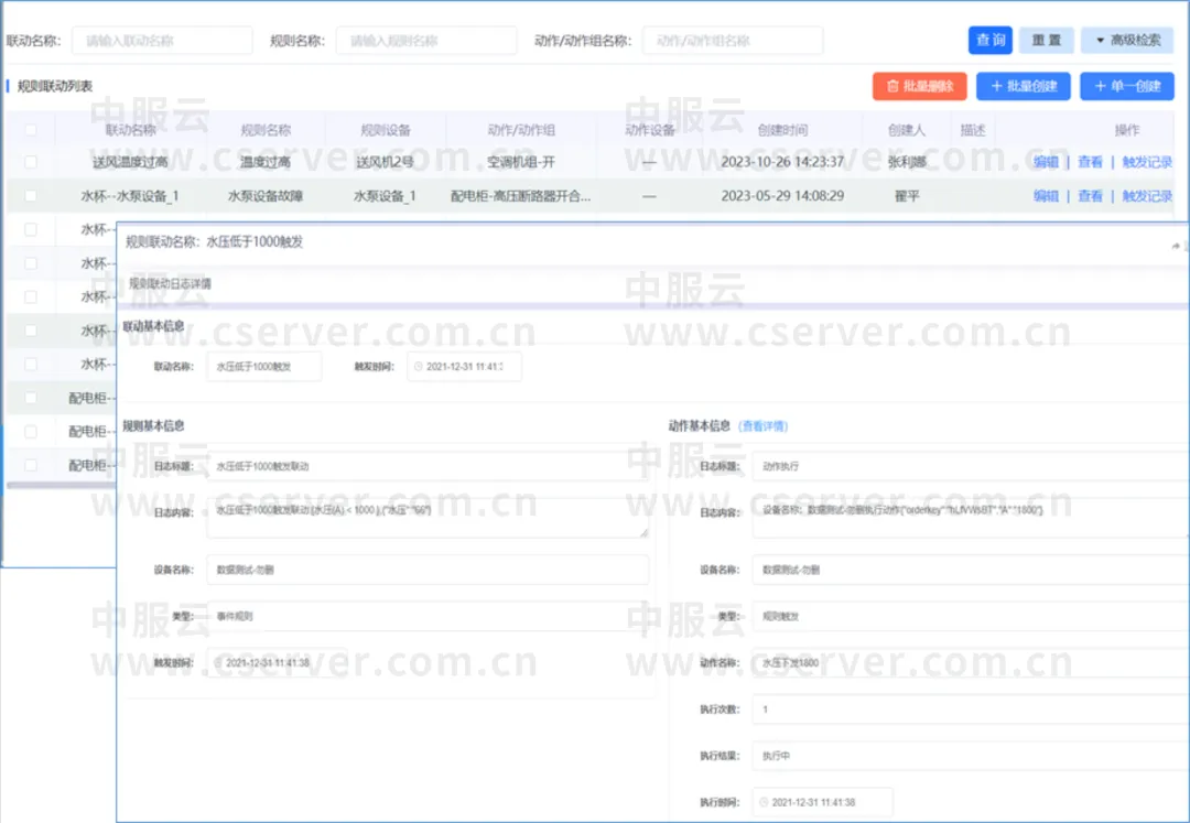 联动控制,包括动作组、规则联动、规则联动摄像头、动作执行安全等。