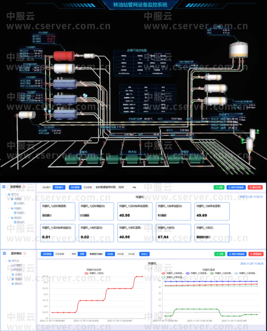 近年来,我国工业行业不断发展,取得了巨大的成就。同时随着数字时代的到来,工业行业不断寻求数智化转型,工业行业对生产效率、安全生产、设备故障诊断、协同管控等方面提出了更高层次的需求。中服云升级的新版数采与监控 SCADA 系统,是一套满足行业需求的高效、协同的新一代数智化管控系统。系统内置大量工业协议,快速接入分布式海量设备、PLC、DCS、仪器仪表等终端设备或系统,采集、清洗、存储、展示数据。同时,通过 2D/3D 组态及各类配置工具,实现对设备或产线监视、控制、参数调节、报警、诊断和处置。硬件和软件组件之间信息流的实时可见性,使工业企业能够无缝管理工业生产、经营活动。