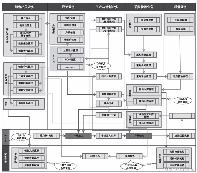 PLM(产品生命周期管理系统):它负责产品设计的图文档、设计过程、设计变更、工程配置的管理,为ERP系统提供最主要的数据源BOM表,同时为MES系统提供最主要的数据源工艺路线文件。