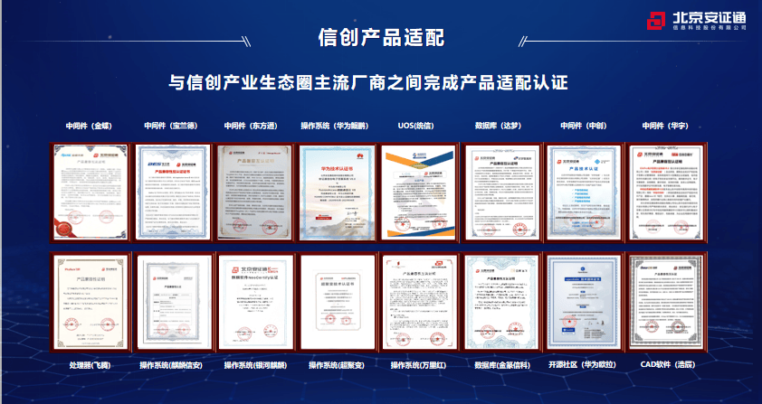 2004年,公司产品通过公安部信息安全产品检测并获得《信息安全产品销售许可证》,随后在2007年通过公安部《公安信息网电子签章技术规范标准》检测的企业,成为全国公检法行业电子签章系统主要服务商,—举奠定行业引领地位。