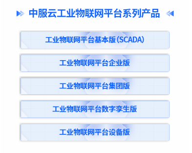 中服云工业物联网平台主营产品:工业物联网平台基本版(SCADA)、工业物联网平台企业版、工业物联网平台集团版、工业物联网平台数字孪生版、工业物联网平台设备版。