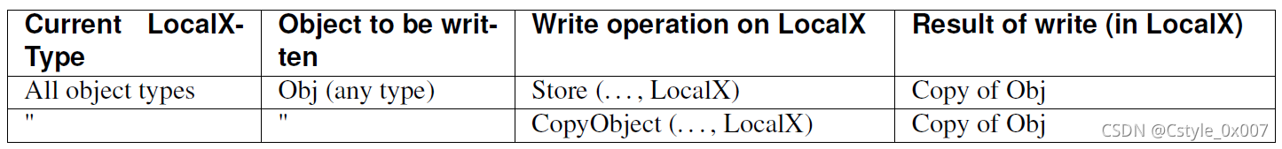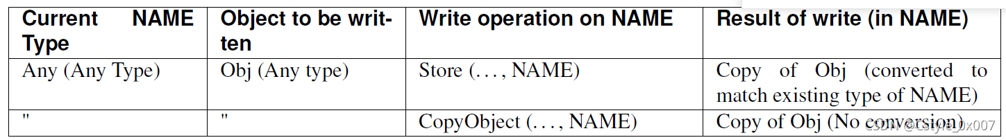 - All object types :先删除Name保存的已存的对象,然后复制原对象到Name。Store算子会先使用隐式类型转换,把源对象转换成与Name匹配的类型,CopyObject算子不执行隐式类型转换。