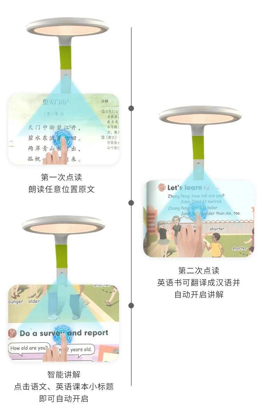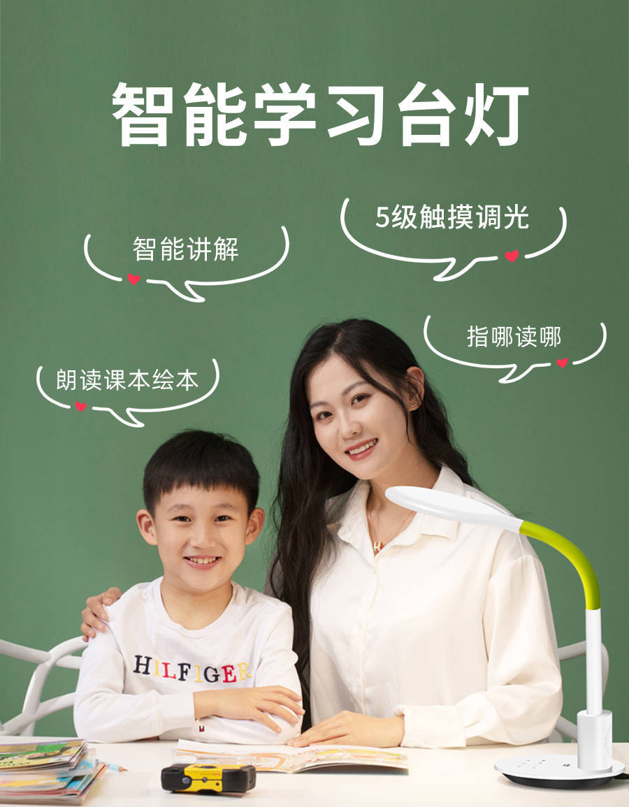 除了提供科学光照保护视力,它还是个辅助孩子学习的好帮手。智能学习台灯拥有强大的指读功能,与从左到右读的传统学习机不一样,它可以指到哪里读哪里,无需等待、高效快捷。