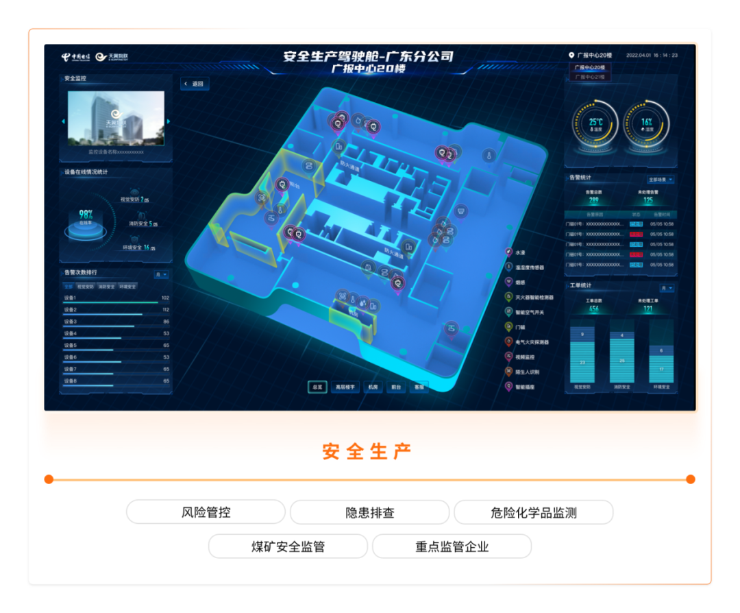 面向智慧应急数字化转型需求,天翼物联基于感知云平台创新能力,为客户提供泛协议接入、感知云应急平台、应急感知数据治理、决策处置大屏等在内的应急感知云服务,构建应急感知神经系统新型数字化底座,实现应急感知、预警、决策、处置为一体的数据要素全流程贯通和全面感知的信息化管理与指挥网络,以及安全智能预警体系,助力企业精准运营、应急管理部门智能决策,赋能行业数字化转型升级。