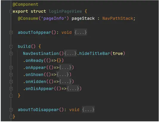 Navigation由NavDestination组件组成页面路由,在实现过程中NavDestination组件会被封装在一个自定义组件中,从而作为一个页面被路由栈使用。当前支持的生命周期函数:aboutToAppear、onReady、onAppear、onShow、onHide、onDisappear、aboutToDisappear 、onWillAppear、onWillDisappear