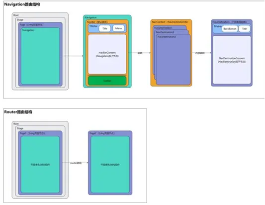 - Navigation天然具备标题、内容、回退按钮的功能联动,开发者可以直接使用此能力。Router若要实现此能力,需要自行定义;