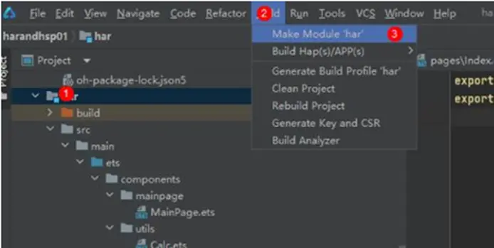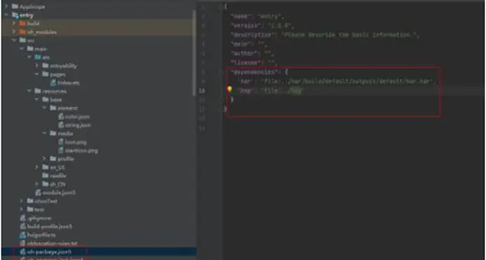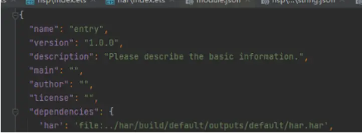 4.引用har包,在引用方oh-package.json5下添加依赖,依赖需要到.har文件,执行install。