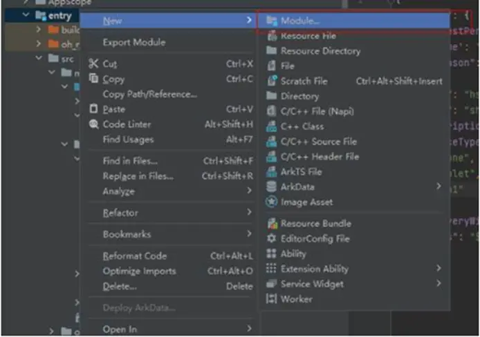在引用方模块的oh-package.json5下添加依赖,执行install。
