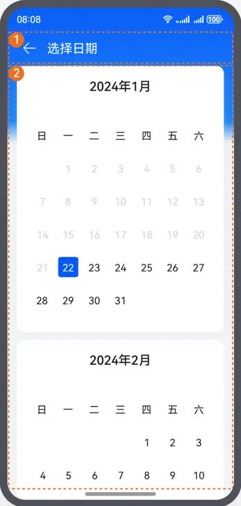 - 将时间选择页划分为2个部分:效果图如下: