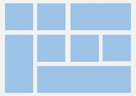 在实现如下图所示可滚动布局效果时,可能会通过 columnStart/columnEnd 对GridItem设置其占有行列数,实现不规则的布局效果。