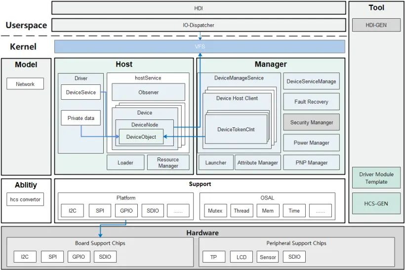 本文主要分析下驱动适配代码仓中的OSAL的相关接口,主要以适配LiteOS-M内核的OSAL接口为例。OSAL在HDF驱动框架中的位置,见HDF架构图。