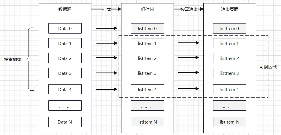 | 按需渲染 | 数据量大、页面需要流畅滚动的场景 | 仅渲染可视区域内的项目,使用虚拟化技术减少内存占用,提升性能。 |