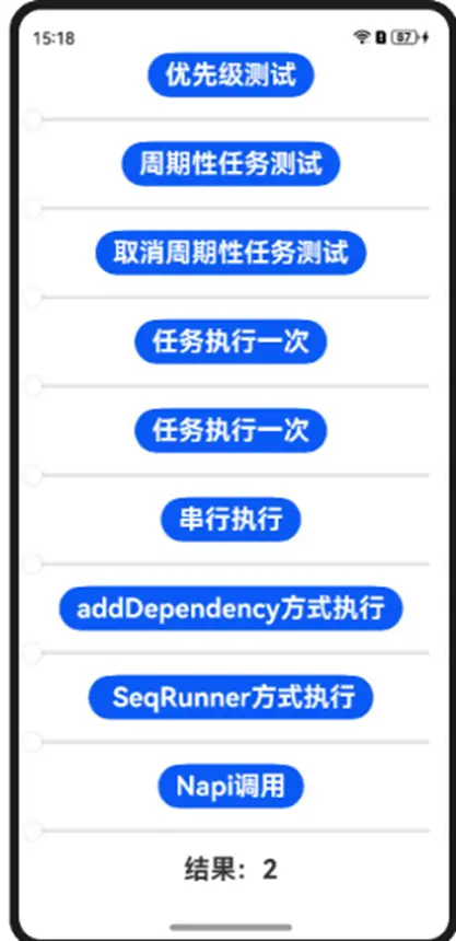 方案:C++层编译的库,在ArkTS层通过import库的方式引用后,在taskpool的回调函数中调用接口。核心代码: