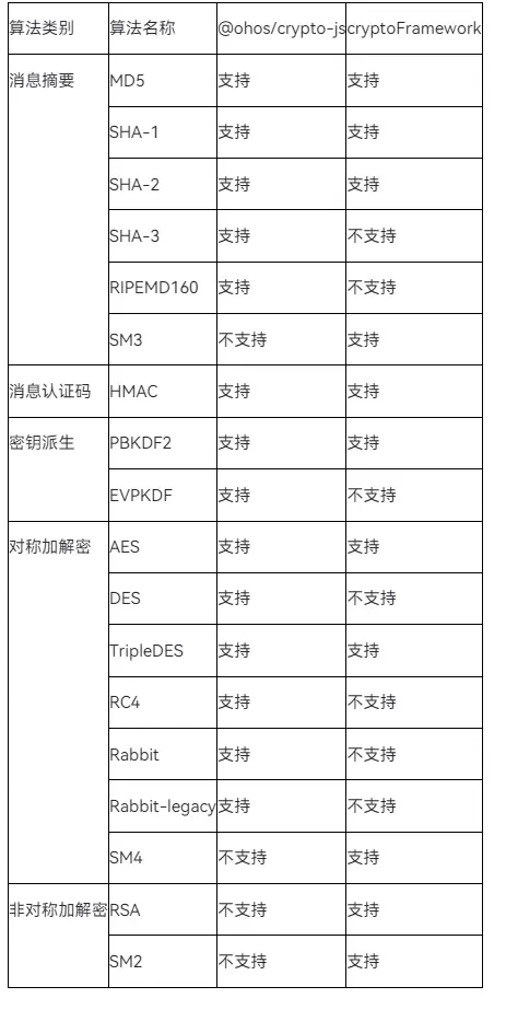 @ohos/crypto-js不支持国密算法和非对称加解密算法,国密算法可以使用三方库 @yyz116/sm-crypto