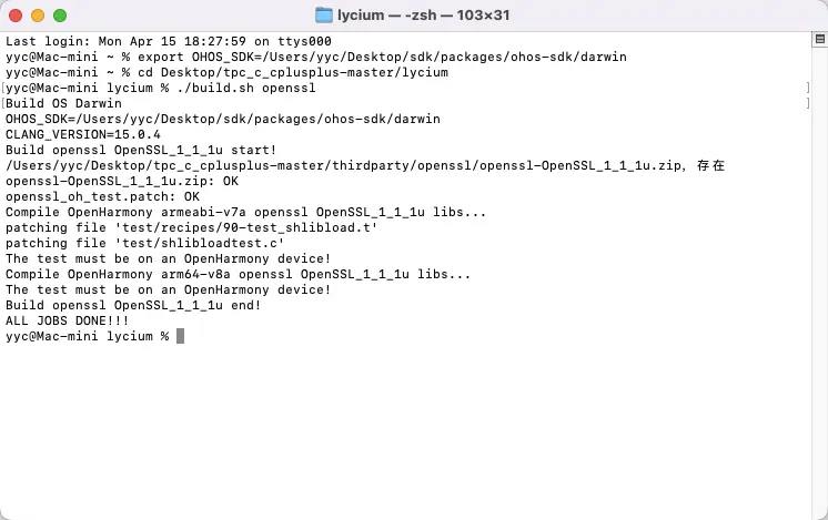 lycium的使用说明:lycium的特点就是自动化编译,只需要一个./build.sh命令就可以完成编译,下面的编译例子(openssl)代码库是通过hpkbuild脚本从github或者gitee上面拉取,在hpkbuild脚本中已经默认提供了一套编译默认的配置,也可以按照需求修改。