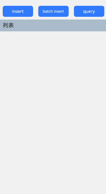 - 进入页面有insert(单条数据插入)、batch insert(批量数据插入)、query(查询操作)三个按钮,点击query按钮后列表数据会从数据库更新,列表每条后面都有删除按钮,可以从数据库删除数据。