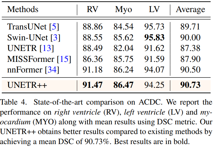 在ACDC数据集中,UNETR++的综合精度比SOTA模型高出0.2%以上。