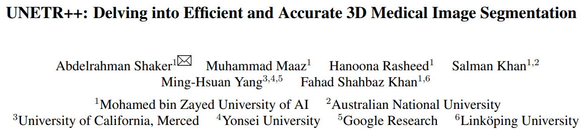 论文题目:UNETR++: Delving into Efficient and Accurate 3D Medical Image Segmentation