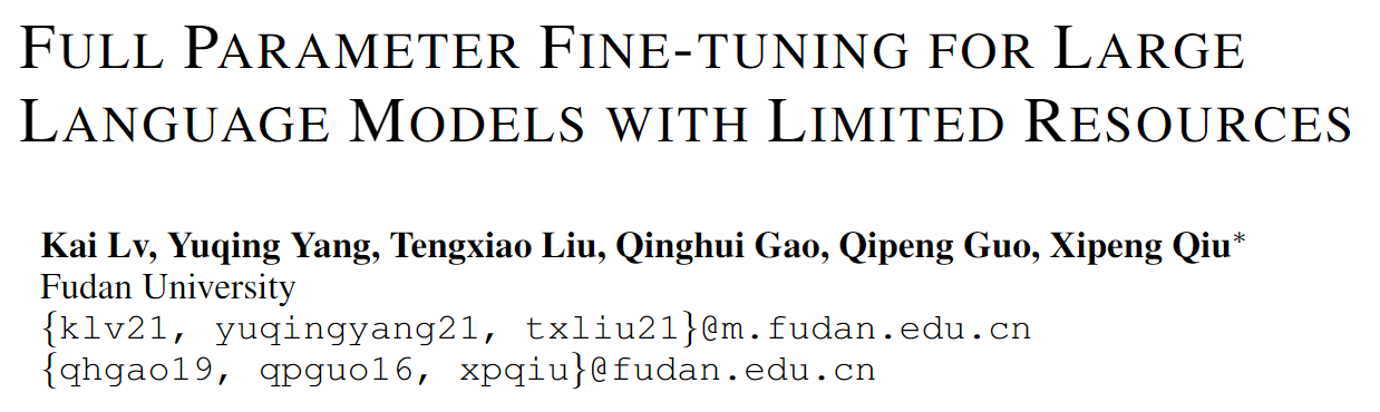 Title: Full Parameter Fine-tuning for Large Language Models with Limited Resources