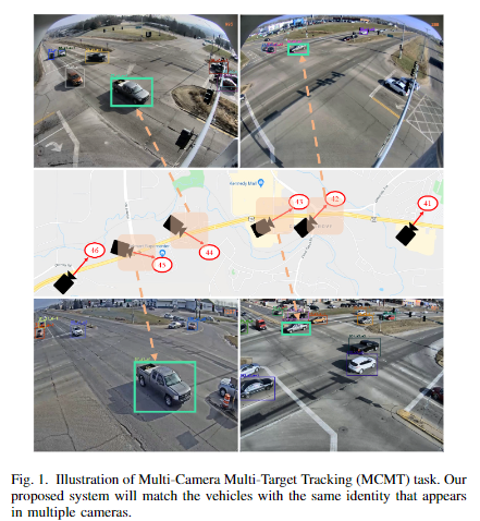 本文提出了一种针对城市规模的多摄像头多目标跟踪任务的新颖方法。所提出的方法包括车辆检测、ReID特征提取、单摄像头多目标跟踪和跨摄像头关联等关键组件,共同实现多摄像头多目标跟踪的结果。特别地,作者提出了两个关键创新点来改善跟踪性能:基于位置感知跟踪方法考虑了目标的空间上下文,基于边界框的匹配方法在跨摄像头关联过程中进行了细粒度的边界框级特征比较,提高了匹配的准确性。