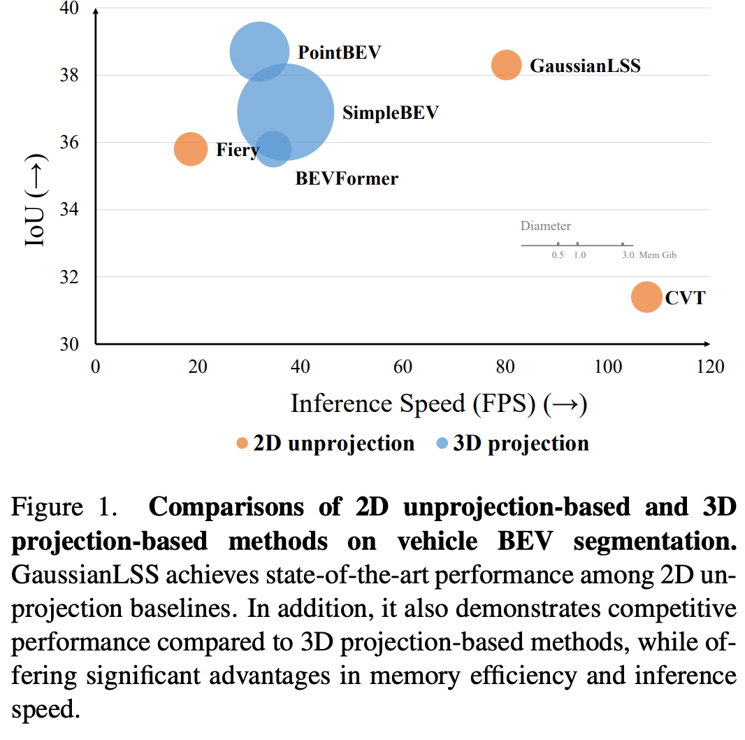 3D 投影方法在准确度方面达到了SOTA的水平,然而,它们对 3D 网格的依赖导致了较高的计算成本,使其不太适合实时应用。为了克服这些限制,作者引入了 GaussianLSS,这是一种基于 2D 反投影的方法,通过引入新颖的深度不确定性建模技术,在准确性和效率之间取得了平衡,以满足自动驾驶应用的实时性要求。