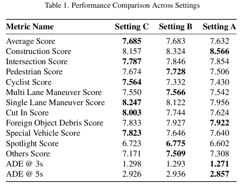 Setting A:仅使用WOD-E2E训练,不使用集成