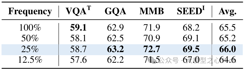 表6:调制频率的影响。以中等频率应用ViLN可获得最佳平均性能。