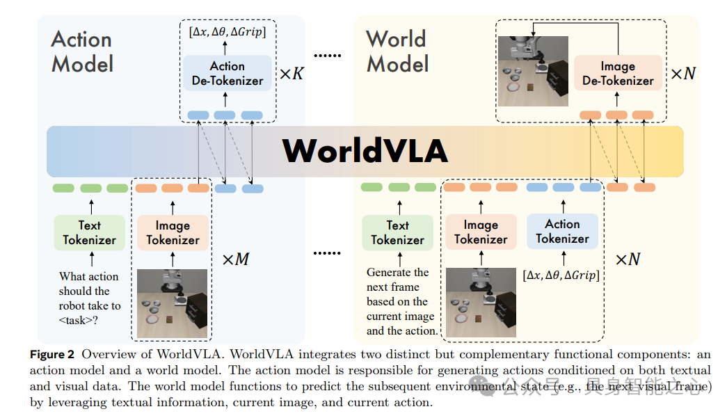 提出了 WorldVLA,一种将动作和图像理解与生成相结合的自回归动作世界模型。
