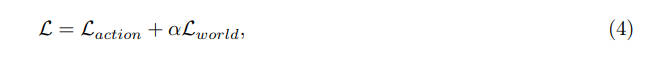 混合动作模型数据和世界模型数据,使自回归动作世界模型能够同时作为动作模型和世界模型。损失函数为动作模型数据和世界模型数据的交叉熵损失之和,其中使用 α 来平衡损失贡献,因为图像token数量远多于动作token。