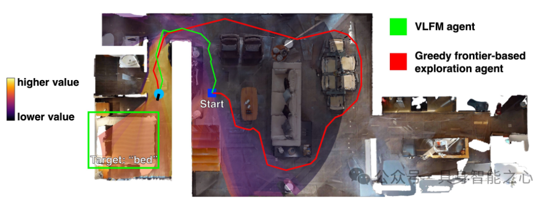 聚焦语义地图构建与任务分解策略。对比分析SemExp与VLFM的技术路径。SemExp 通过强化学习训练价值网络生成探索热力图。VLFM 则利用视觉语言模型实现跨模态语义匹配解析两者在未知物体导航场景中的性能差异,实践语义地图构建核心算法(包括占据地图更新、边缘探索点生成与排序)。