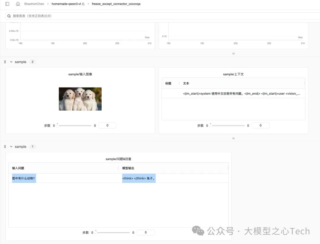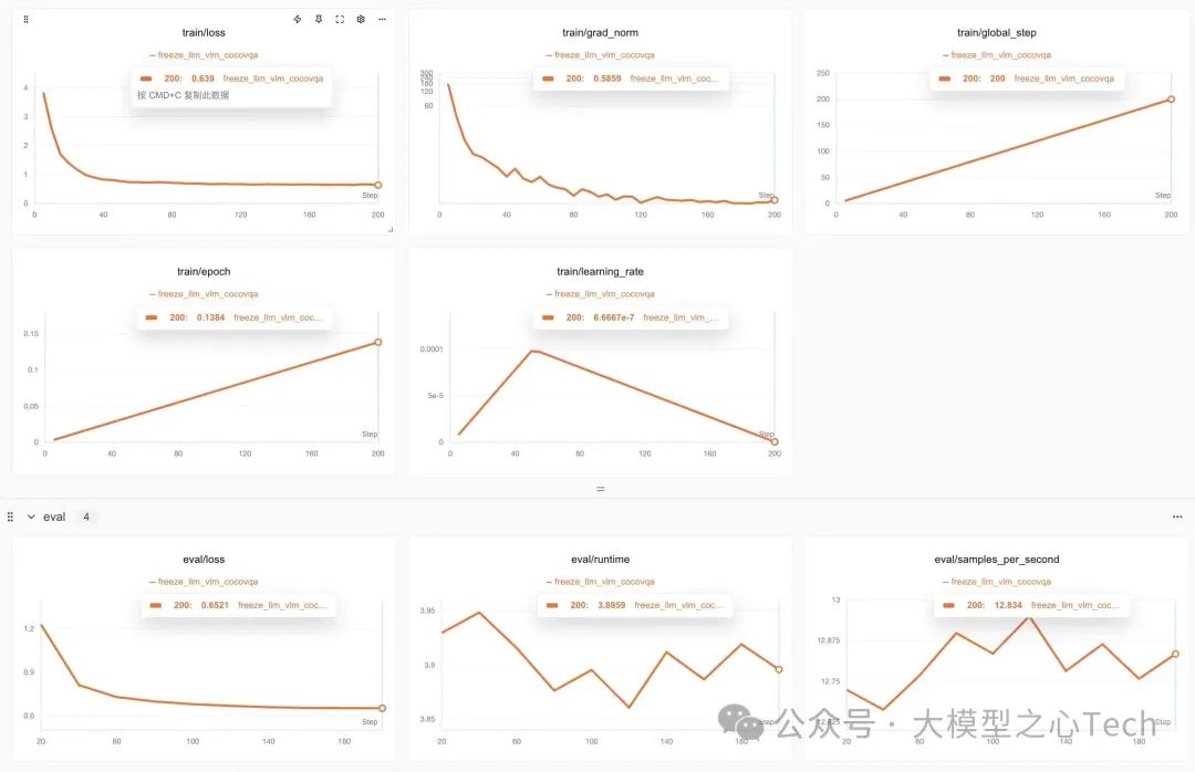 为了进行快速验证,笔者首先使用cocoqa数据集并且进行了200steps的训练,所有参数与前文所述一致。通过