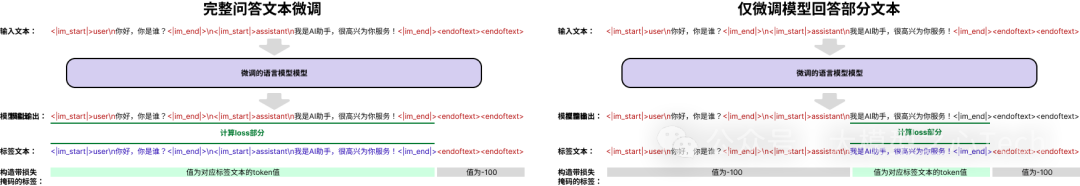 可以看到读者尽量保持了与Qwen3的风格和复用特殊令牌。这样能够使得后续拼接的Qwen3-0.6B模型不至于受到上下文差异过大带来的性能损耗。实际上在设计微调上下文时应尽量与模型先前训练的任务接近,以减少微调带来的性能损失。