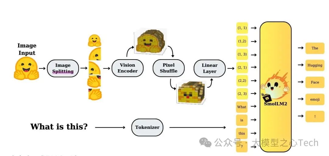 视觉模型层:SmolVLM2-256M版本用的是Google的SigLip模型,一个基于ViT的视觉模型,选用的是最小的SigLip-93M的版本,HF论文里没具体写是直接用的SigLip的参数还是他们从零构建的(有注意到的读者可以评论留言下)。在SmolVLM2代码中对应的是