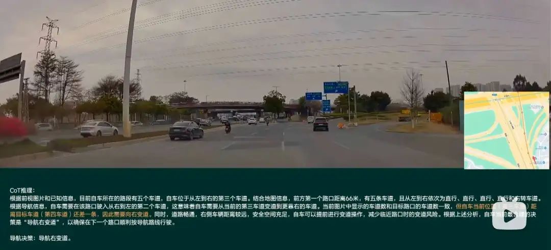 而思维能力、沟通与记忆能力是语言模型赋予的能力,其中记忆能力还用到了RAG。下面是理想VLA司机大模型思维链输出的demo:结合了动态目标、静态元素、导航地图、空间理解等等内容。