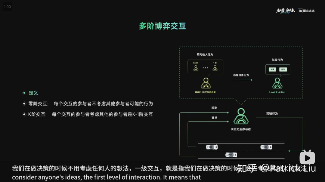 交互应该使用有严谨数学基础的决策系统来处理,例如蒙特卡罗树搜索(MCTS)或简化版本的MPDM。主要挑战在于如何利用自动驾驶领域的知识,智能地修剪策略树,以应对维度诅咒(组合爆炸)。学术界的MPDM和工业界的特斯拉都展示了如何平衡地生长策略树。