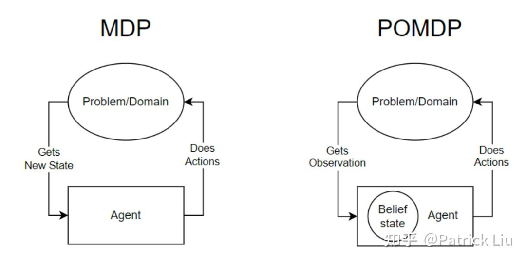 在围棋中,所有状态对双方棋手都是即时可见的,使得这成为一个完美信息游戏(perfect information game),其中观察等同于状态。这允许游戏用MDP过程描述。相比之下,自动驾驶是一个POMDP过程,因为状态只能通过观察来估计。