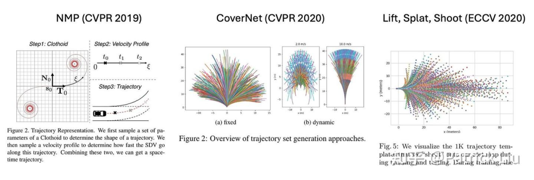 采样方法启发了许多利用机器学习来进行规划的论文,包括CoverNet、Lift-Splat-Shoot、NMP和MP3。这些方法用人类驾驶行为的大型数据库取代了数学上合理的五次多项式。轨迹的评估可以很容易地并行化,这进一步支持了采样方法的使用。这种方法有效地利用了大量专家示范来模仿人类驾驶行为,同时避免了随机采样加速度和转向角。