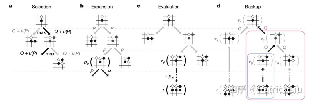 回溯(backup):算法根据对局的结果更新所走路径上的节点值。如果结果是胜利,节点值增加;如果是失败,节点值减少。这个过程将rollout的结果向上传播,基于模拟结果优化策略。